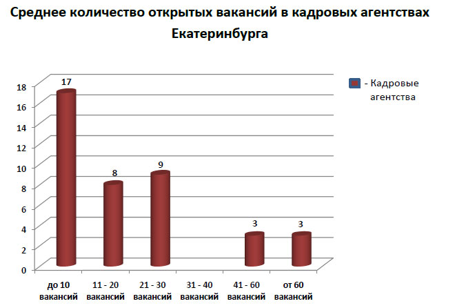 Среднее количество открытых вакансий в кадровых агентствах Екатеринбурга